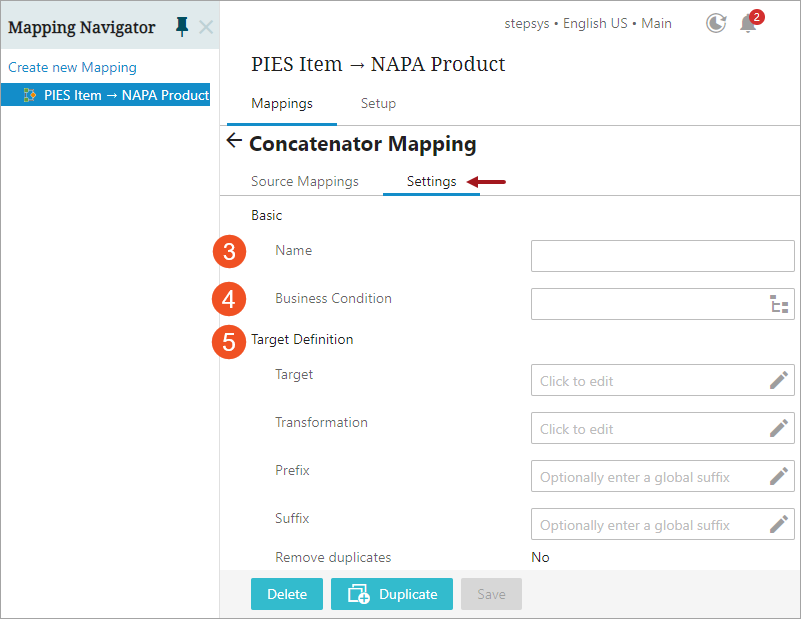 On the Settings tab, type the desired name in the Name field. This could be any unique name that describes the mapping functionality.