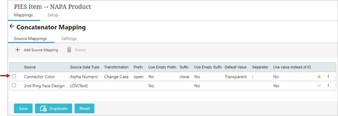 Once all the necessary parameters within the Source Mapping Guide window are populated, click OK to close the Source Mapping Guide window and then click Save to save the changes. All the values populated within the Source Mapping Guide window parameters will be displayed as a mapper row in the table within the Source Mappings tab (as shown below). To edit the source attribute selections, click on the row, and it will open up the Source Mapping Guide window in order to make edits.