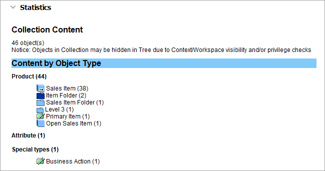 The Statistics section gives an overview of which type of objects are included in the selected collection.