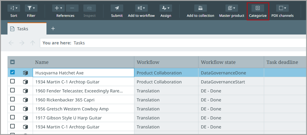 To move objects from where they reside to a new location, select the object(s) in either the Tasks, Collections, or Browse perspectives and click the Categorize button from the toolbar.