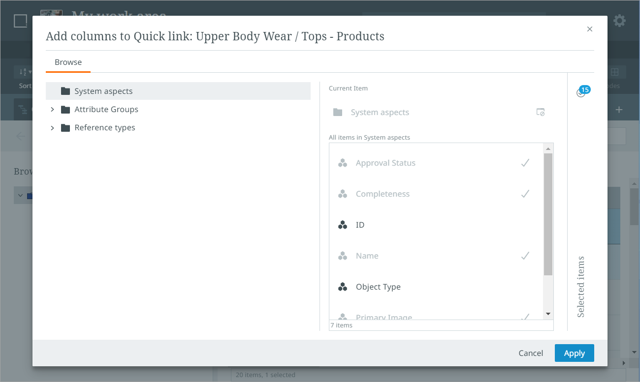 Completeness scores for products (based on the default metric) can also be viewed and accessed in the list view by adding the Completeness option via the Customize toolbar action.