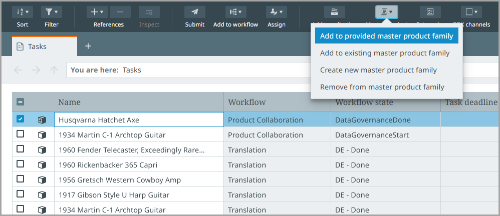 Create new master product family - This action creates a new master product family and automatically adds the product(s) you have selected to it.