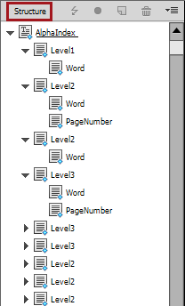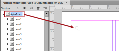 - Select the AlphaIndex XML file in the InDesign Structure panel.