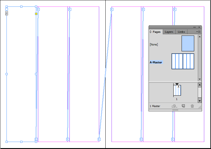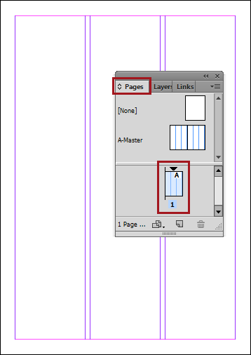 Note: The master page must be applied to the page. In the below example, the A-Master master page has been applied to page 1.
