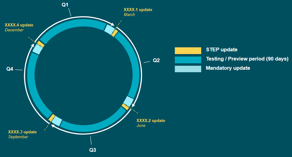 This topic contains details related to the cadence of STEP updates and baseline end-of-life (EOL) and/or mandatory update information for the STEP versions listed.