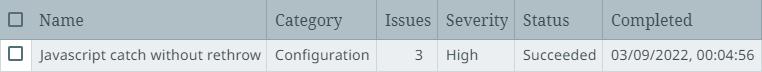 The configuration healthcheck 'Javascript catch without rethrow' identifies JavaScript business rules that use a try-catch statement without a rethrow for exceptions. The absence of a rethrow can cause data inconsistencies since the database transaction is not rolled back as is expected when a core exception is thrown. With this healthcheck, exceptions are no longer ignored, and instead are rethrown by the business rule framework. An administrator can edit the identified business rules and add a rethrow for unhandled exceptions.