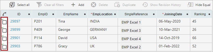 Initiating business actions is now available from the toolbar on the Globally Configured Multi Edit Data Container editor in the Web UI, allowing users to select individual data container instances to execute the action on and making the user experience consistent with other table-based editors.