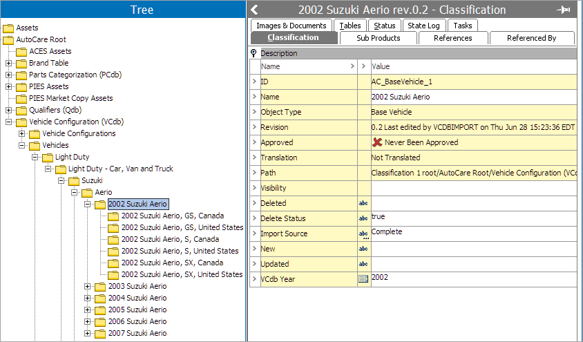 The intention of this topic is to introduce the basic AutoCare VCdb file structure and the way the objects are built in the system when a VCdb file is imported into the system.