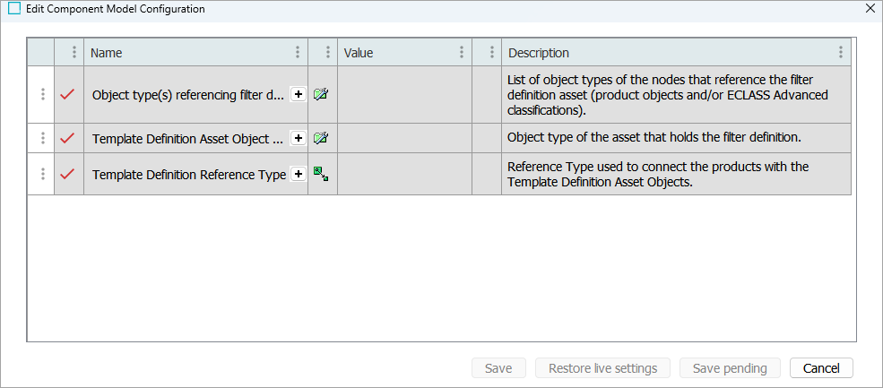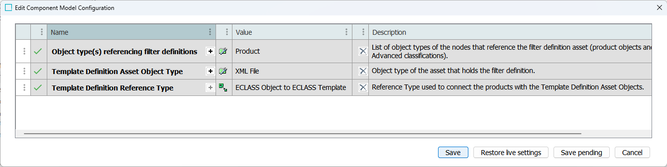 Object type(s) referencing filter definitions: Choose the object types of the nodes that reference the ECLASS Templates asset. This can be the object type of product objects and/or ECLASS ADVANCED classifications.