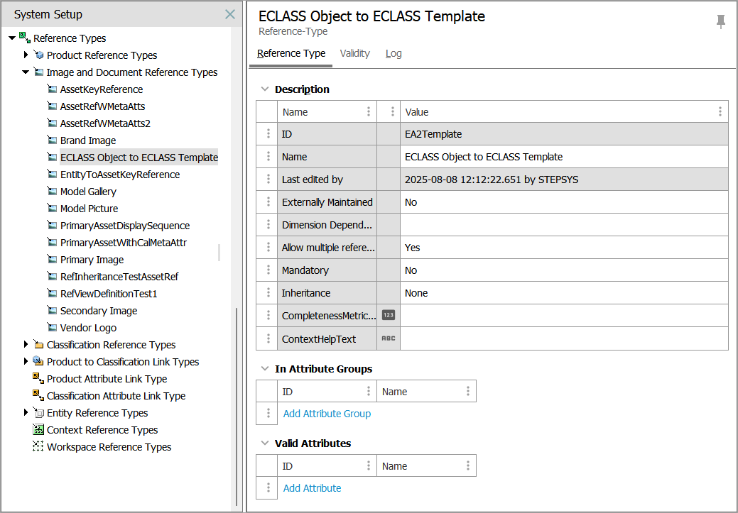 Template definition reference type: Choose the reference type that is used to connect the products with the ECLASS Template asset objects.