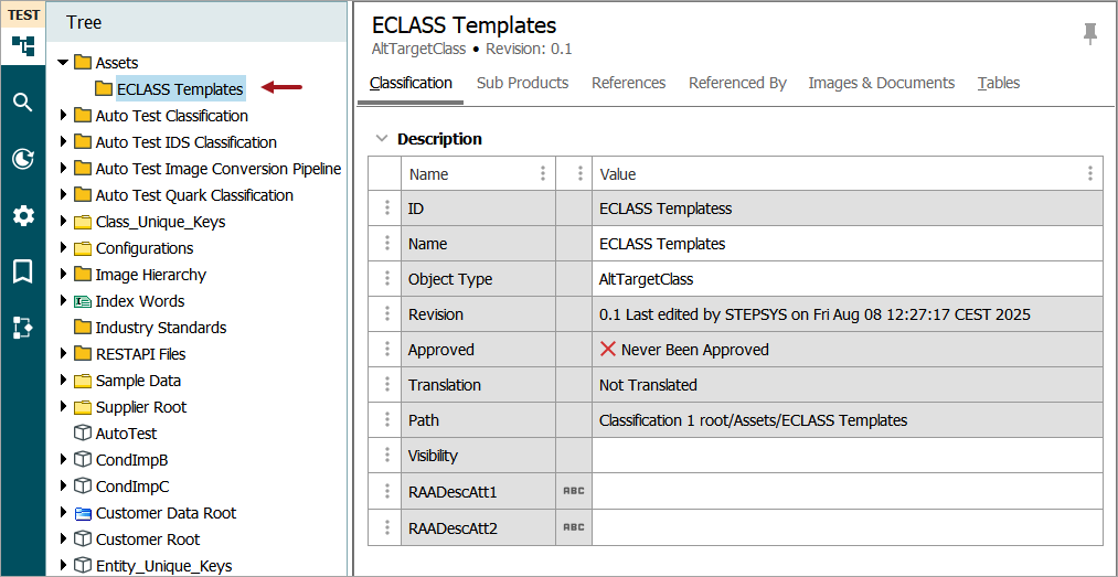 On the Tree tab, create a classification hierarchy to store assets in STEP. For information on creating a classification folder, refer to the Classifications topic in the Getting Started documentation.