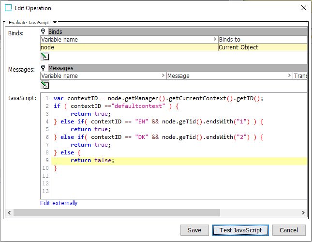 In the following example, these contexts return 'true' and are published: