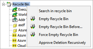 To address all objects in the System Setup Recycle Bin, right-click the Recycle Bin node and choose one of the available options described below: