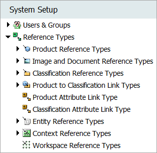 Referencing or linking objects allows those objects to be used for different purposes, while avoiding data duplication and minimizing data maintenance. For example, a single stock image could be referenced for a whole family of products. Reference and link types are housed and created in System Setup under the Reference Types node.