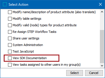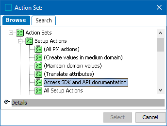 - Select the action set that grants access to the SDK and API documentation, click Select, and then in the Add Privilege Rule dialog click Save.