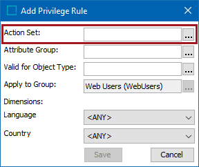 - In the Add Privilege Rule dialog, next to the Action Set field, click the ellipsis button (