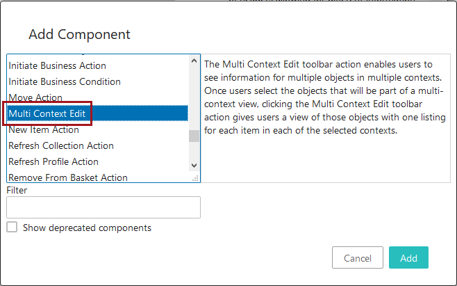 - Then select 'Multi Context Edit' from the component list. Click 'Add'.