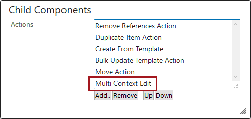 - Once added to the list of actions for the Node List, double-click the Multi Context Edit component to configure.