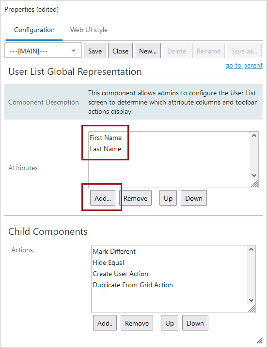 Important: The default User List screen does not allow for management of metadata attributes or toolbar actions.
