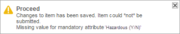 Any mandatory attributes are indicated in the Web UI with an asterisk. Those that are mandatory on transitions, rather than states, do not show an asterisk, but when the user attempts to submit the object to the next state in the workflow, the corresponding input field will be highlighted to indicate missing data.