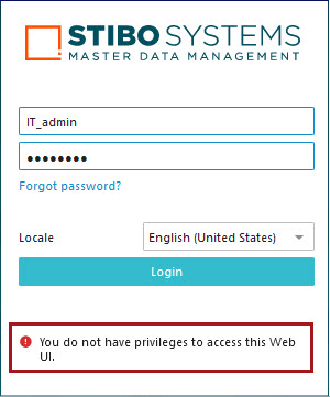 When this configuration is complete, both groups of non-admin Web UI users can access only those Web UIs they are privileged to access, while the admin users can access all Web UIs in the Web UI setup groups. For instance, users belonging to the second user group of non-admin users will get this message if they attempt to login to the Web UIs accessible only for users in the first group of non-admin users: